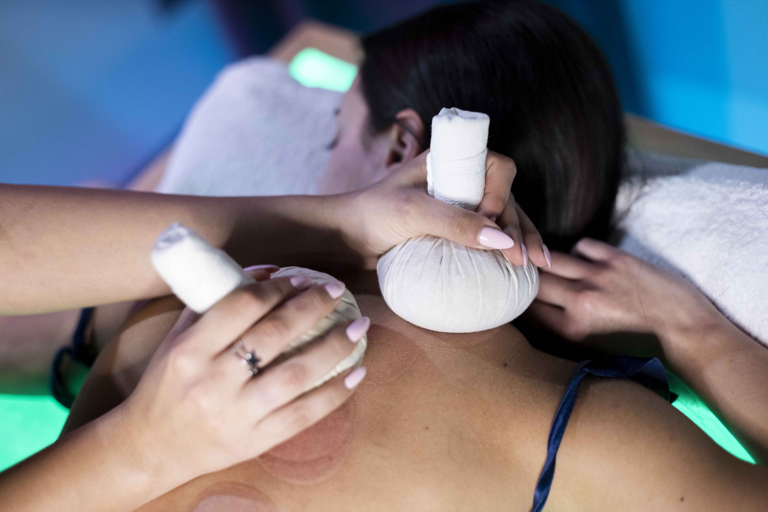- Pindasweda: massaggio effettuato con sacchi pieni di erbe ayurvediche e olii caldi